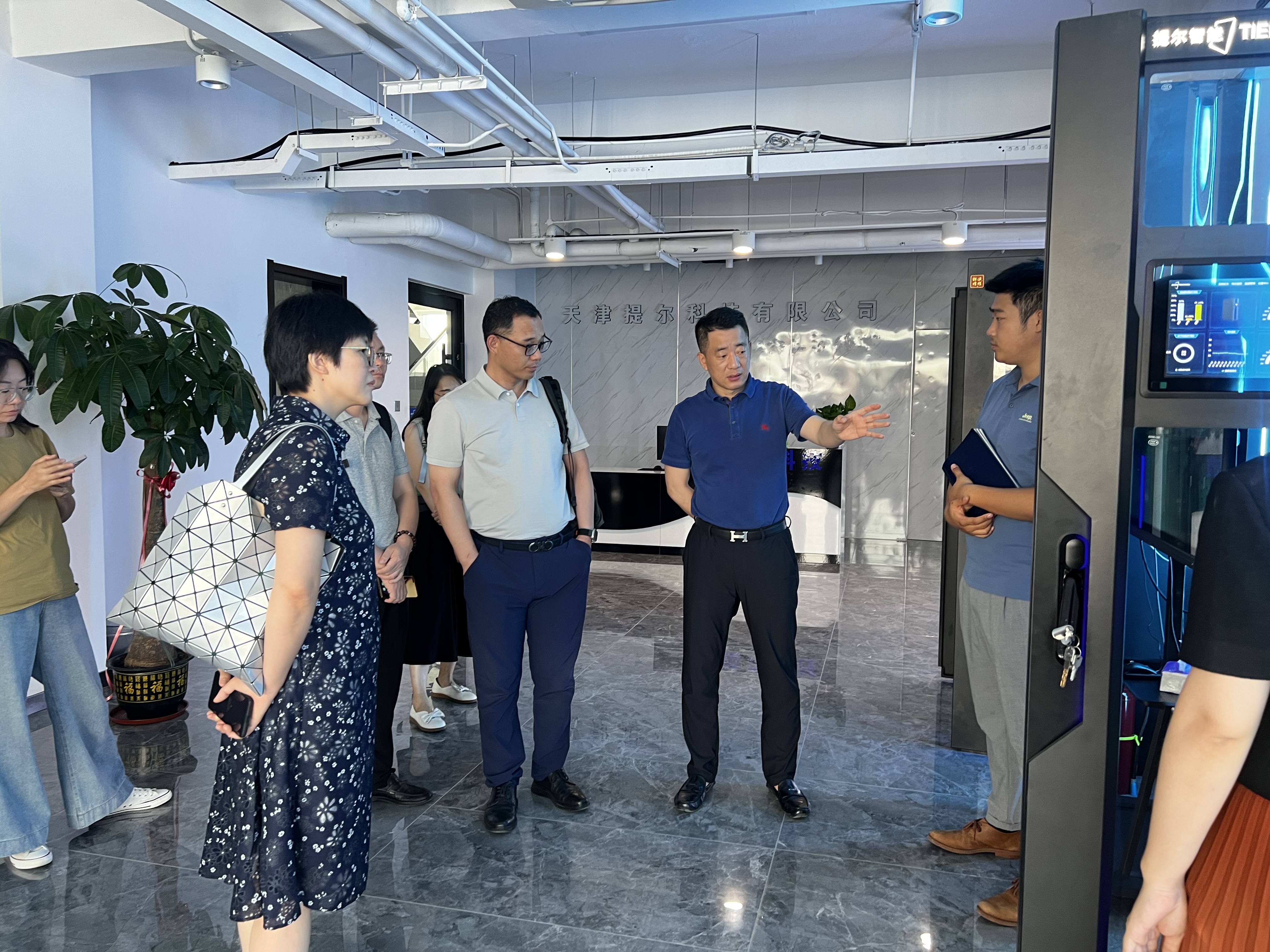 随后,调研团前往天津提尔科技有限公司进行访问。座谈会上,财务总监蔡晓利为大家详细介绍了公司的发展历程、运营模式、优势条件以及在电子冷却液领域的核心研发成果。双方就浸没式液冷智算中心技术,以及如何进一步加强合作进行了深入交流。在孙海旺总经理的陪同下,参观了提尔科技的液冷展示设备,了解了其在散热与温控领域的研究成果。