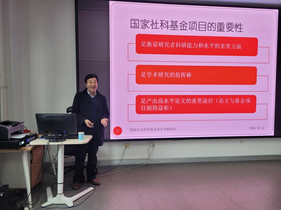 安树伟教授结合自己申报国家社科基金项目的历程,从选题、查阅文献、确定题目、撰写申请书、修改申请书、材料报送等方面详细讲解了项目申报过程中的技术要求。他指出申报社科基金项目时面临的突出问题,并提出了解决方法。最后,安教授提出了几个申报过程中需要特别注意的问题,为参会教师申报基金项目提供了宝贵的经验和启示。