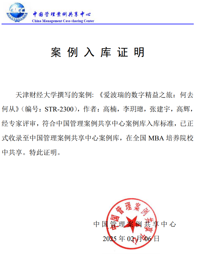 近日,企业管理系高楠、高辉两位老师团队在与天津爱波瑞科技发展有限公司合作开展产教融合研究生工作站建设的过程中,以爱波瑞公司为研究对象所开发的《爱波瑞的数字精益之旅:何去何从》与《逐浪前行——爱波瑞的战略创业之路》两个教学案例,经中国管理案例共享中心严格评审后成功入库。此次两个教学案例的入选标志着英超直播