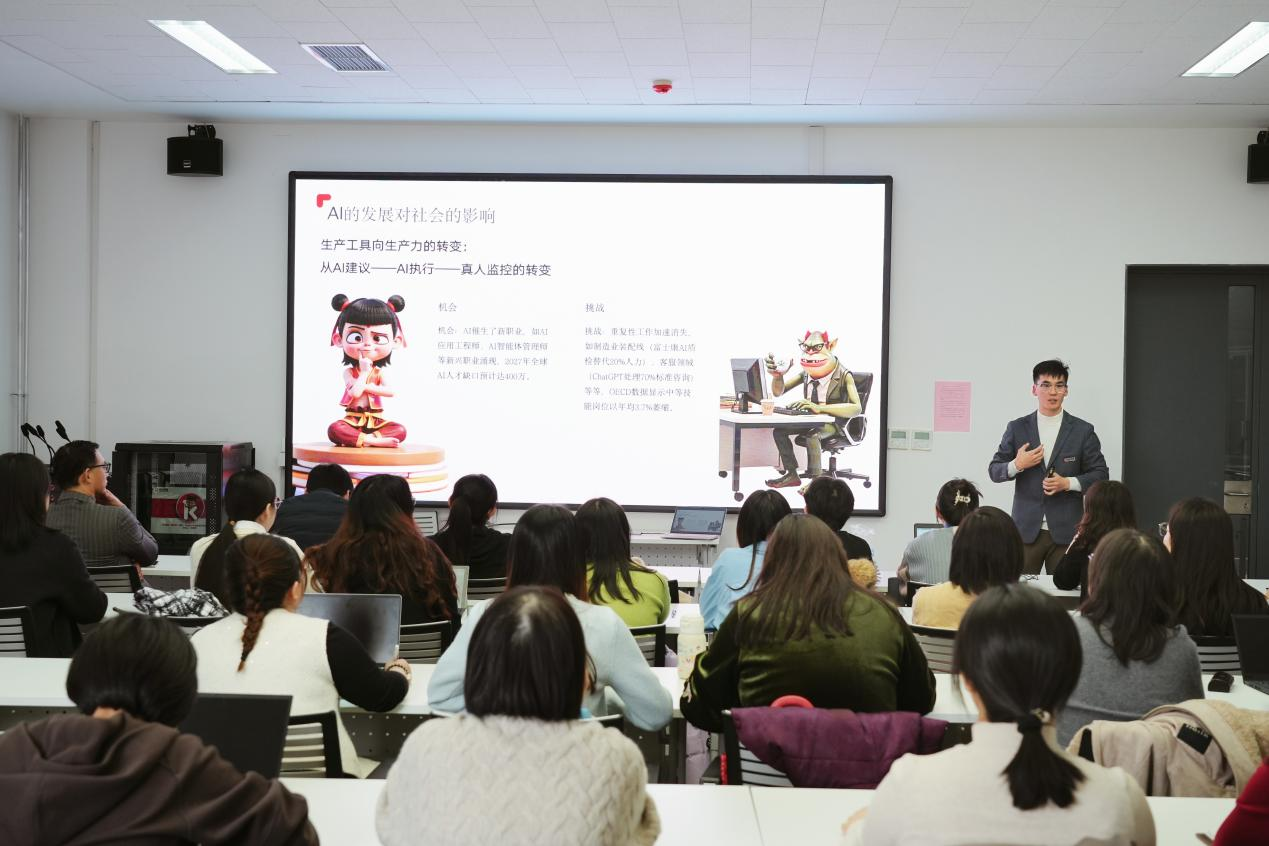 讲座聚焦AI提示词的规范化应用和模型实践、AI赋能办公效率提升、AI与教学、科研、管理实践的新路径三方面,带领在座师生探秘AI赋能“新财经”建设的实践路径。