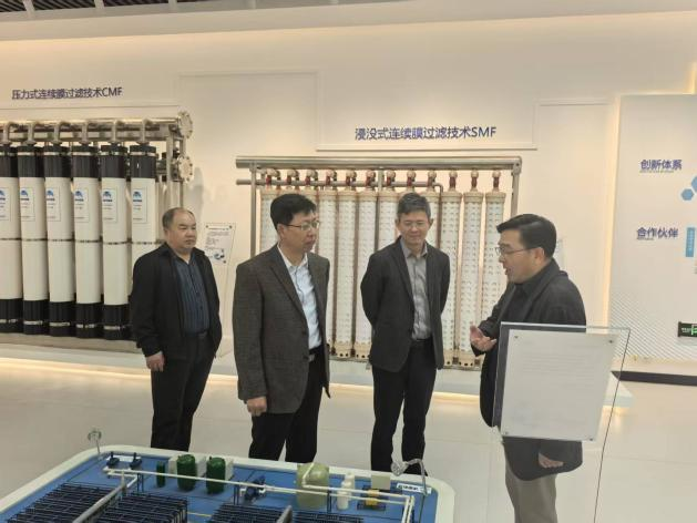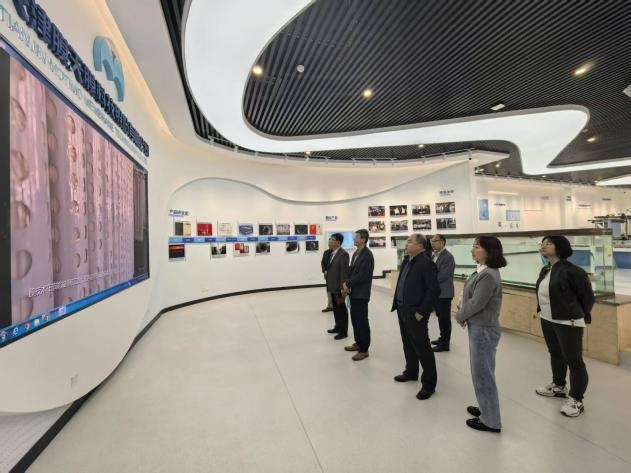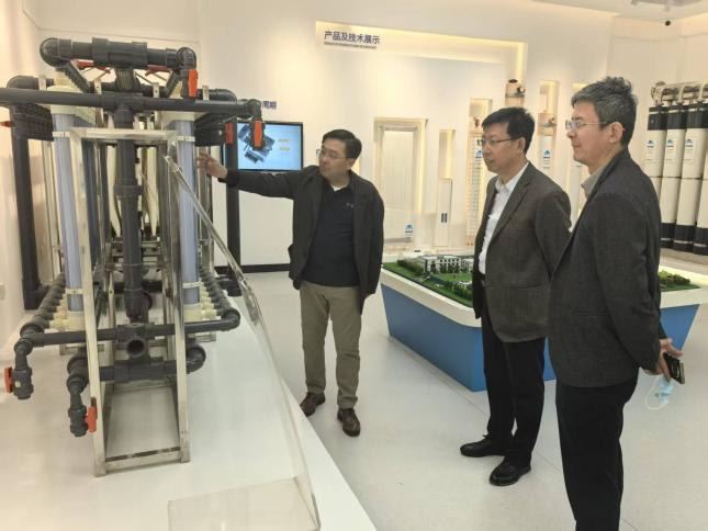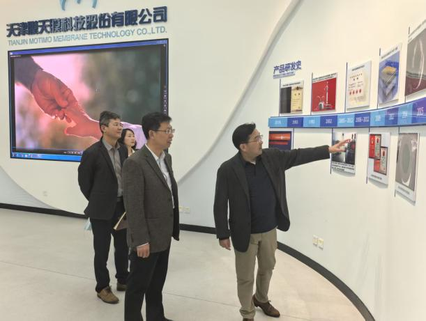 在范宁董事长的带领下,韩少波副校长一行首先参观了企业展厅,了解了津膜科技的发展历程、核心技术、主营产品以及在水处理领域取得的显著成就,对企业的创新能力和行业影响力有了直观认识。