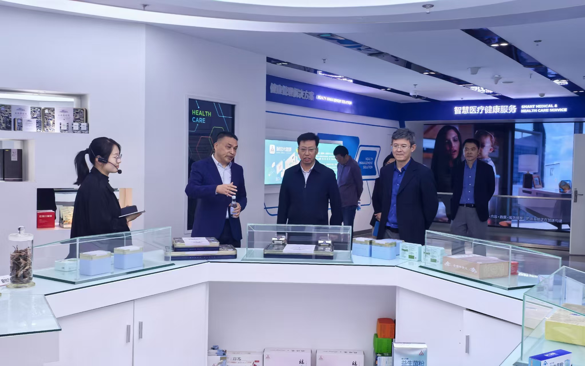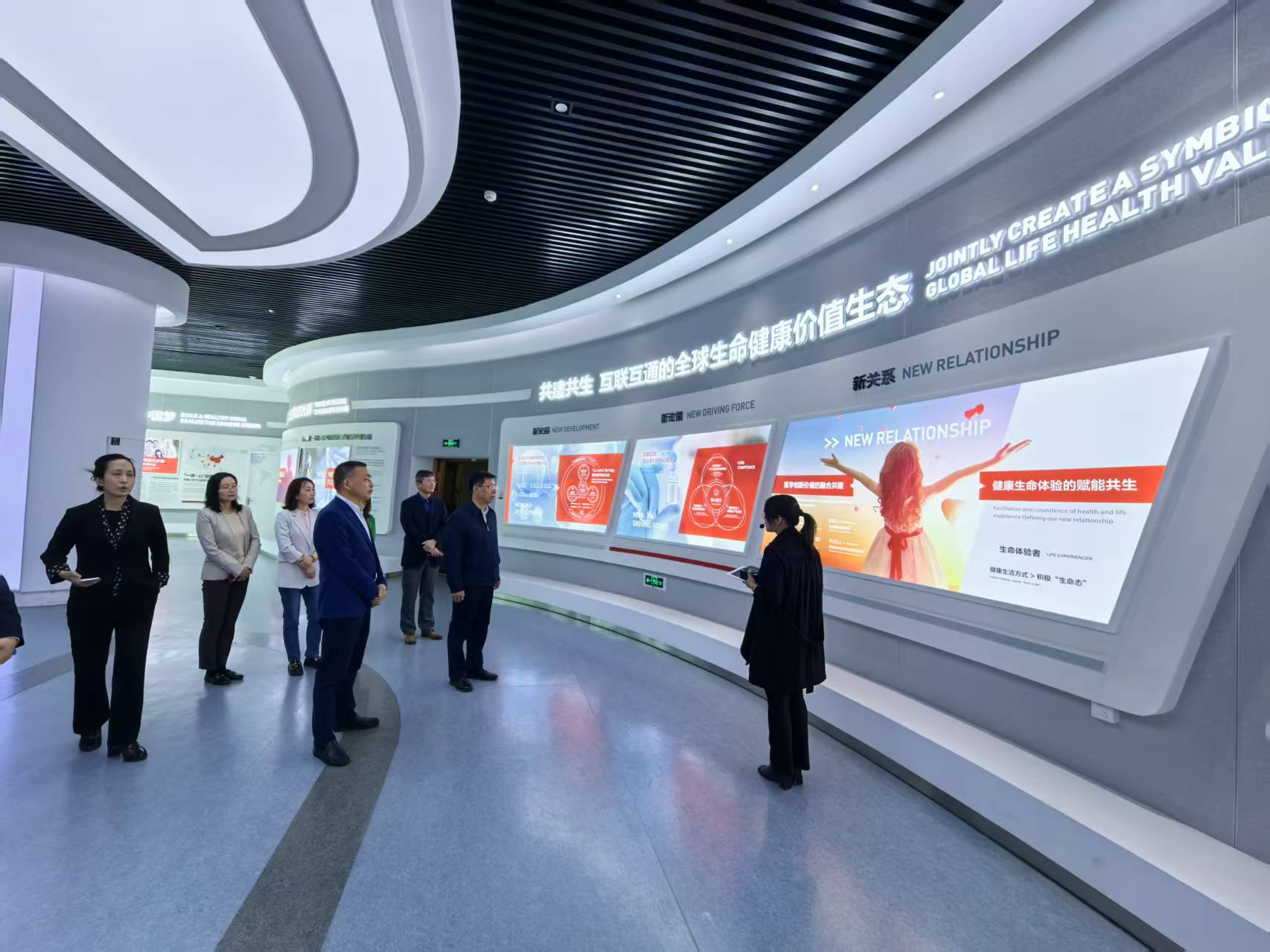 朱永宏对我校一行表示热烈欢迎,并陪同参观了天士力大健康展览体验馆,详细介绍了公司的发展历程与企业在大健康领域的创新成果与产业布局。同时,他还对公司的各类产品及所获荣誉进行了讲解,展现了天士力集团强大的科研实力和创新精神。