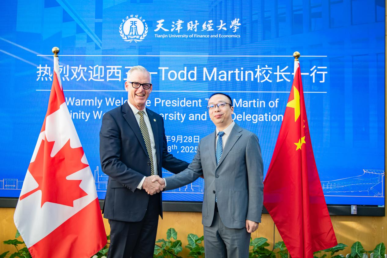 2025年9月28日,天津财经大学与加拿大西三一大学合作举办的长城国际工商管理硕士项目(简称“长城国际MBA项目”)2025届毕业典礼在天财校园盛大举行。天津财经大学党委书记赵鸣、校长孟昊分别会见了西三一大学校长Todd Martin、英超直播