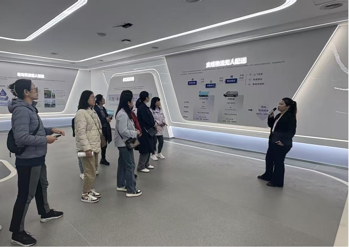 调研活动中,物流系教师参观了天津智能车联网示范展示中心,深入了解天津市数字经济发展情况,重点考察了数据作为新型生产要素的流通与价值化过程。教师们还现场观摩了车联网大数据平台架构,体验无人接驳、无人配送等智能网联场景,实时操作天津智能车联网示范应用平台,并与天津市数据资产登记评估中心首席运营官任国良开展调研座谈。