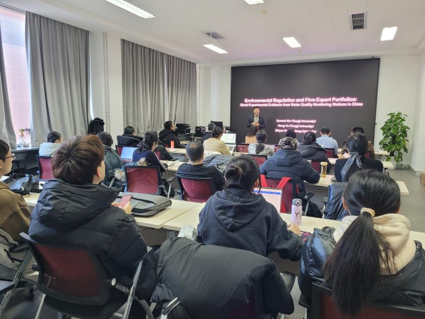 师生举办了一场题为《环境规制与企业出口转型:来自中国水质监测断点的证据》的精彩学术讲座。