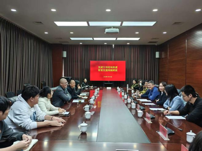 办学历史与学科优势,重点阐述了物流管理专业在智慧物流、供应链金融等领域的学科优势。周卫峰介绍了中心在交通运行监测、智慧物流规划与大数据分析方面的实践成果,同时指出在技术研发、理论支撑与高端人才方面仍面临挑战,亟须高校的智力支持。党群工作部部长刘玉荣分享了以党建引领业务发展的经验,为双方共建提供了参考。