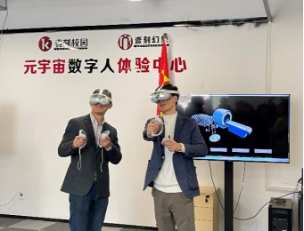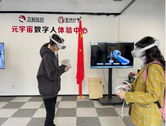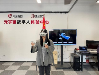 在壹刻幻象的MR混合现实体验室中,企业技术人员为师生们深度讲解了MR技术在汽车展示、医疗保健等方面的应用,展示了虚拟与现实的交互。在实际体验中,师生们通过佩戴MR头部显示器,操纵手柄,身临其境地控制虚拟世界元素,沉浸式探索未来场景,感受新科学技术的魅力。