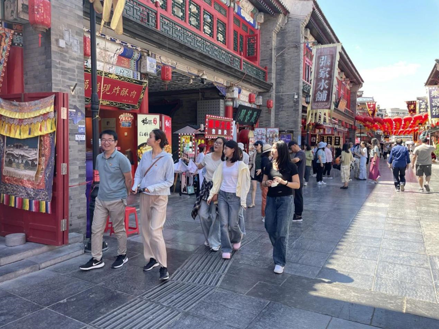古文化街为国家5A级旅游景区,以“中国味、天津味、文化味、古味”为经营特色,承载着天津丰厚的文化底蕴,展示了许多传统手工艺,如泥人张彩塑、风筝魏风筝和杨柳青年画等。走到古文化街的中心,支部党员们感受到元代古迹天后宫的庄严肃穆,体会到历史的悠长厚重。此外,古文化街也提供了品尝天津特色美食的机会,这里的小吃、特色菜肴和传统饮品让人大饱口福。