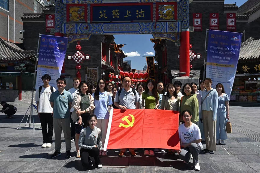 为了深入落实习近平总书记视察天津重要讲话精神,聚焦以文化人、以文惠民、以文润城、以文兴业,在推动文化传承、旅游发展上善作善成,英超直播 旅游系教师党支部与学生党支部,并邀请部分入党积极分子,于531日联合开展了主题党日活动——古今交融、中西合璧的天津城市漫步时空之旅。从古文化街,沿海河途经金汤桥,再到意式风情区,支部党员们游览中外历史遗迹,体验非物质文化遗产,缅怀革命先烈,接受思想政治教育,提升了参与天津建设发展的成就感与自信心。