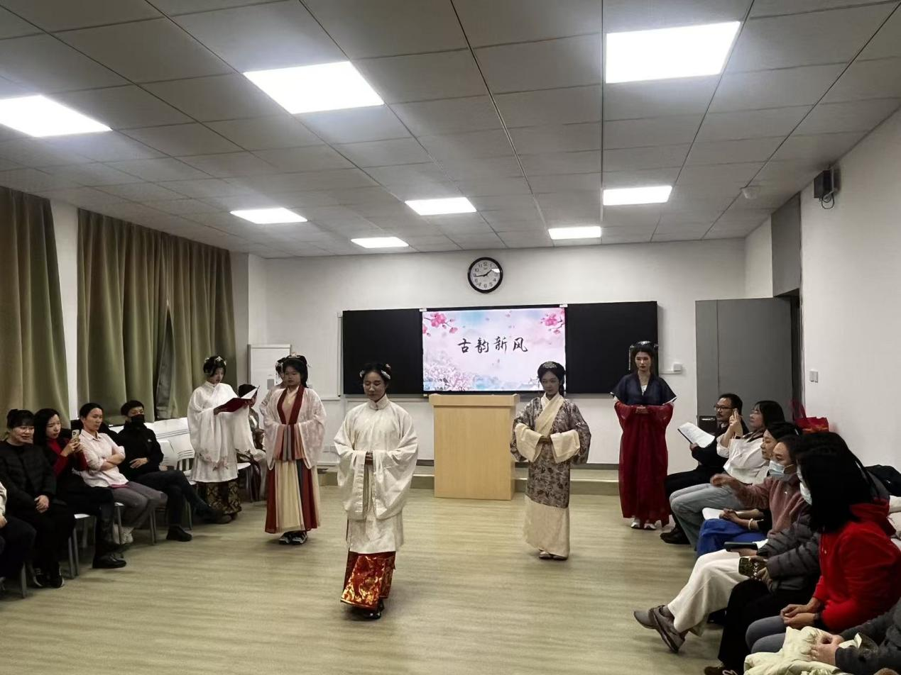 企业管理系学生党支部雅矜汉服社的同学们身着华美的传统服饰,为在场师生带来了一场视觉盛宴。通过舞蹈表演、汉服走秀以及中华传统礼仪解说,同学们生动演绎了中华优秀传统文化的独特魅力与深厚底蕴。这不仅让留学生们近距离感受到了“华夏衣冠”之美,也为讲好中国故事、传播中国声音搭建了生动的舞台。