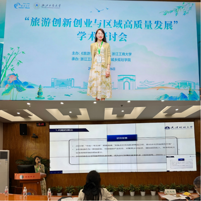 5月24-26日,由《旅游学刊》编辑部、浙江工商大学联合主办,浙江工商大学旅游与城乡规划英超直播 承办的“旅游创新创业与区域高质量发展”学术研讨会在杭州隆重召开。本次研讨会围绕文旅领域如何通过创新创业驱动区域高质量发展进行研讨,来自全国各地高校和科研院所的120余位专家学者、业界代表及师生参加会议。我校英超直播 旅游系王彩彩老师参会分享研究成果,并获得“优秀会议论文”。