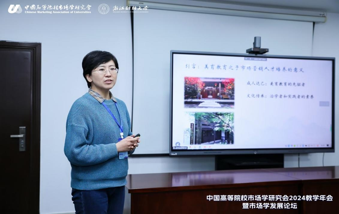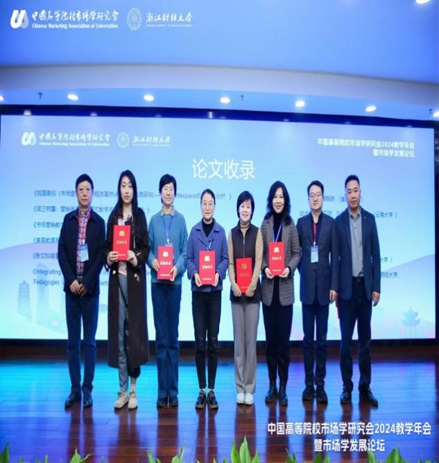 于萍老师在分论坛三“教学成果/教学论文展示专场”的教学论文展示阶段,宣讲了论文《美育教育导向对高校市场营销专业人才品格塑造的影响——基于美育文化场景创设和场景化参与的视角》,并获评年会优秀教学论文。该论文基于场景理论和能动性理论,在文献分析和质性研究的基础上,构建美育教育导向下营销专业人才品格塑造模型,研究揭示了专业人才培养过程中秉承美育教育导向,有助于构建数智时代的场景式美育教育模式,提升市场营销专业学生对内在自我和营销美学的认知体悟,从而对学生品格塑造带来积极影响。