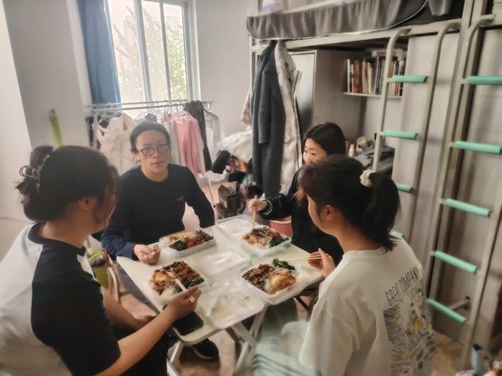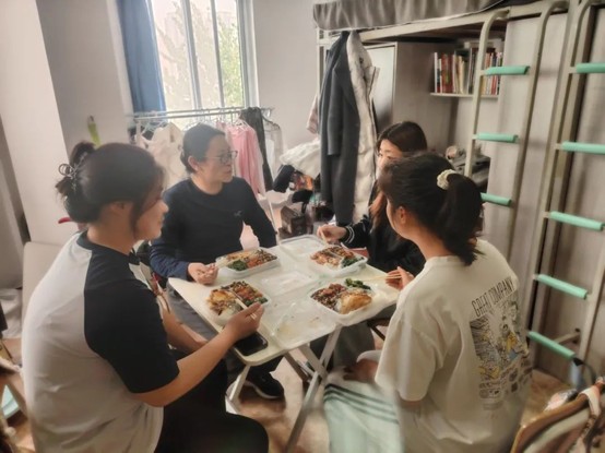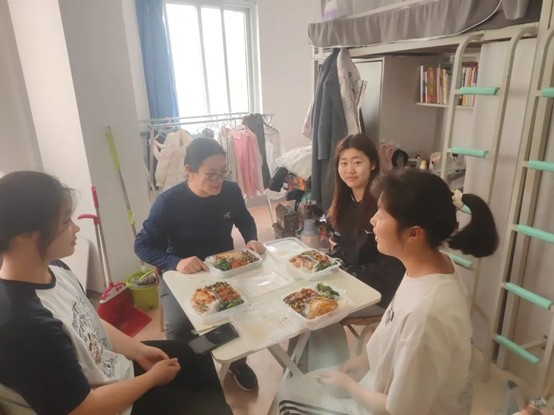 4月11日,刘婵老师携带精心准备的美食来到优秀宿舍1-B-502,与同学们一同开启了一场特别的午餐时光。在享受美食的过程中,师生们相谈甚欢。刘老师亲切询问同学们在学业和生活中的状态,耐心倾听大家的烦恼。当同学们谈及专业课程学习的压力时,刘老师给出了许多实用且贴心的建议,同学们受益匪浅。她鼓励同学们要勇敢追求自己的梦想,同时也要理性分析自己的实际情况,做出最明智的选择。这场交流不仅加深了师生之间的情谊,更让同学们对未来有了更清晰的方向和更坚定的信心。下面让我们一起来看看大家的收获吧!