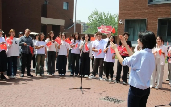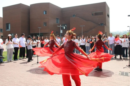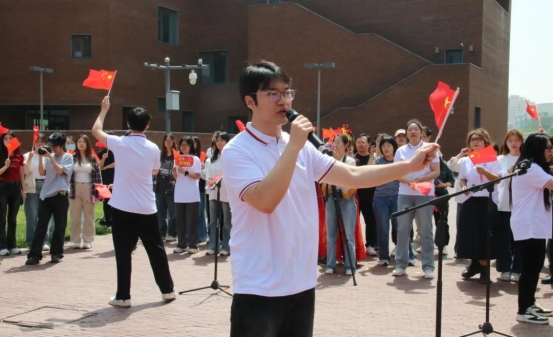 领导老师、辅导员、实力主唱、百名入党积极分子培训班学员等共同打造的“声颂青春”红歌快闪五四特别活动在N座校友之家咖啡厅前举行。活动以《错位时空》五四版合唱拉开序幕,通过经典红歌与青春演绎的碰撞,将历史记忆与当代青年之声有机串联。师生们用音乐搭建起时空桥梁,在春日暖阳中,完成了一场跨越代际的文化接力。