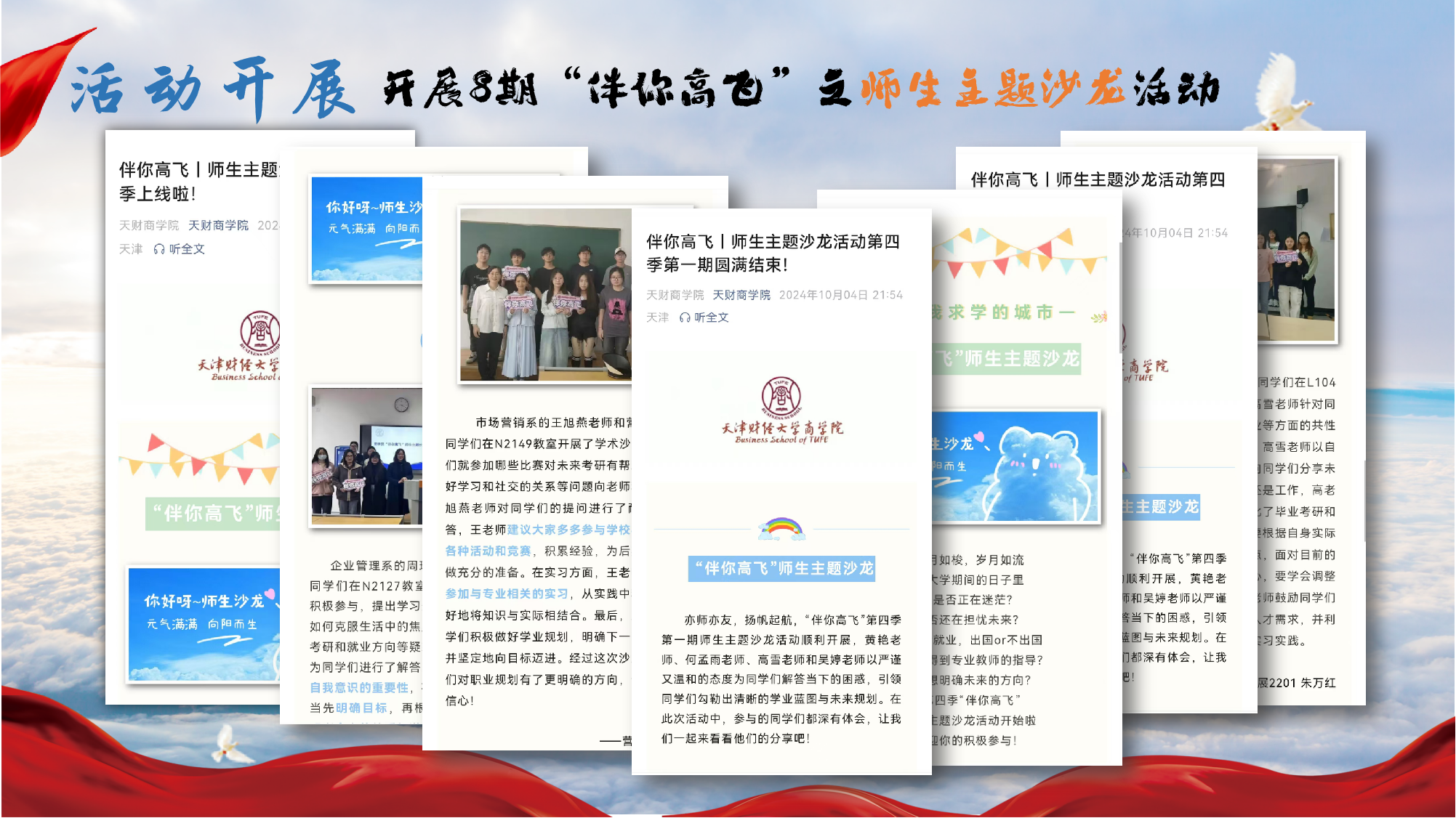 开展了多项特色科研活动,累计开展“研之有道”系列讲座、“双商并行”系列讲座十余场。本学期还开设了8期“Office Hour”师生面对面主题活动、4期“伴你高飞”师生主题沙龙活动、8期“教师外卖”活动,覆盖百余名同学。