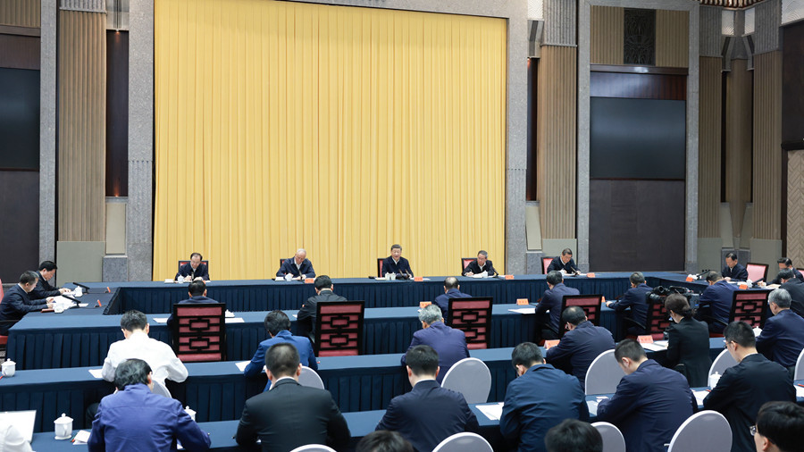 4月30日上午,中共中央总书记、国家主席、中央军委主席习近平在上海主持召开部分省区市“十五五”时期经济社会发展座谈会并发表重要讲话。新华社记者 王晔 摄
